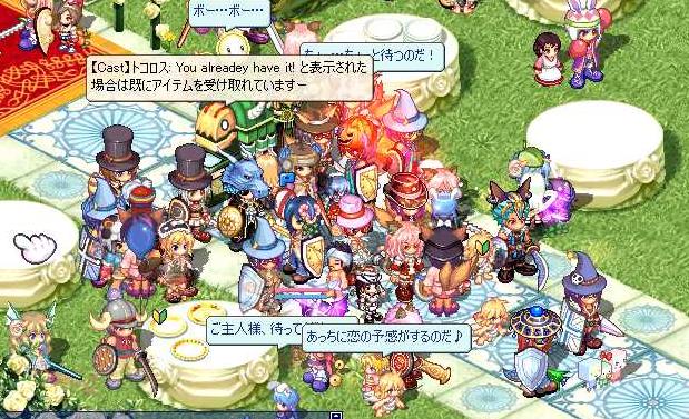 いまだにアップデートできないんだぜ…テンプレすらかえってこないんだぜ… なんで起動できないんだろう(´・ω・`)再DLしかないのかな(´・ω・`) ウイルスなバスターさんのせいじゃないの?って聞いたからおこられない程度にいじくってみよう、とおもいます。 PR いったい僕がなにをしたというのだーーー てな感じで トリスタはいれません(゜∀゜) 公式にでてるやつじゃなくて、アップデートサーバに接続できないんだ… 前から何回かこういうことがおこってたから(過去記事参照)またかーと思って2週間?3週間?前からほっといてたんだけどなおる気配がありません。なぜなのよ。 今度のアップデートでもなおらなかったら問い合わせするよ… そんなわけで媛さんすこしのあいだはいれないの(´;ω;`) エピクエやりたいよ!ていうかほんとどうにでもしてくれ。 みずもしたたるいいおとこ いいおとこ? とかってひとりあそびしてたら ぴんぽーん!てなんか音がするんだ。 なんだよなんだよまた緊急メンテ?とかおもいながらながれてくる文字みてたらね、 どこのドラゴンボール… けどいく!いってみる!イベントだいすき! メガロ| λ= やっぱり みんな かんがえることは おなじみたいです。 どこいったらいいんだろう…ってうろうろしてたらなんかCASTさんのこえが聞こえるんだ。 あれっどこだ!ってまだわからなくて、いっぱい人が行くほうにいってみたら はじめてしゃべってるの見た… 今まではhttp://yaplog.jp/en_trick/archive/249のときにはしりぬけていったのをみかけた!とかそんくらいだったからなあ。 しゃべれたんだ… そんなこんなでごまもらっていってきたよPv。 ところでなんでよりによってごま。 まだCastさんいないときにどまんなかはしりぬけてみた。 人口密度がすごいなあ。こんなに人がいるのひさしぶりに見た。 すこししたらさっきのCastさんがきたみたいでね なんていうか これしかことばがみあたらない。混沌。かーおす。 ところであのことばはぼくらに反応してくれたって考えてもいいでしょうかごめん黙る ところでアポシスの像ってあるじゃない たくさんあつめたらなかよくなれるんだって本気で信じてた15の夏。 さすがに今は信じてないけど、 たくさんあつめたらなかよくなれるの(゜ω゜)? うさぎのエピソードクエがエルロイしかやってないって気づいた今日この頃。 なんかこの装備、ぼくがやるとまぬけにみえます しかしこれでぼーんごれびあんこ☆が現実になったよ! だれかいっしょにぴこぴこしようぜ! どうでもいいけど関さんうたうまいね。すげえ。俺、惨状! ところでね、このあいだ、携帯をつかおうとしたんだ。 そしたらクーポンたくさん持ってて、じゃまだし使っちゃえーってクリックしてたら。 ポプリのたからばこあけちゃっ・・・ _| ̄|○ せっかくいままでだいじにとってきたのにね!あんなにきいきいいいながら掘って結局ハピバレ手に入れられなくてチョコネクにしたのにね!いまさらチケットかと! もういいです…チケット、だいじにします…ずっととっとく。 そんで文字のカードじゃまだったからうっぱらっちゃったんだけど来年はいらないといいな…! Sがいちばんあまってた。53枚。 ほんと荷物もちすぎだよねぼく。なにもってんのか自分でもわかんない。装備がだめなのかなー。 はなしはエピクエにかわるんだけど。 やっと洞窟にはいったとこらへん。 カモノハシだとおもってあまくみてましたちょういたい。しぬかとおもた。 精霊のアンクレット?と貝あつめなきゃー。 昨日撒いたばっかりじゃないか。うぃきはすみずみまでよみましょう。 ところでさあ、妖精さんがうずのむこうにつれてってくれるじゃない きたねえええ!とおもったのはぼくだけか。 このあいだね、ギルメンさんにスキルあげてつだってもらってたんです。 そしたら「ナグーってもってる?」ってきかれました。 まだもってないですー、てこたえたら じゃあつかまえにいこう! みたいな話になって いってきました。 ナグーをつかまえるためにはまず、ナグーとなかよしにならなくちゃいけないみたいです。 おにいさんのとなりにいるナグーちゃんによしよししたりおどったり抱きついたり芸を教えたりしないといけないみたいです。 なんかもう、おまええええええ!こっちむけええええ!!!!ていいそう。 たいへんだ、いきものに接するのって。 心のそこからそうおもいました。ゲームの中でおもうのも変かもしれないけど。 ちなみにこのこでした。 最後にはちゃんとお手してくれたよー。よかったよかった! そんでこのことなかよくなったらおにいさんからスキルをもらわないといけません。 おにいさーん、スキルくださーい! ひとことでいえば すごかった でもこれで無事に捕獲スキルをもらった! あとはつかまえるだけ! でもね、この 「つかまえる」 っていう作業が、いちばん大変だったみたい。 まず馬(アクティブ)がたくさんいる中をはしりまわって野生のナグーをさがして、 ある程度HPを削った(おとなし
